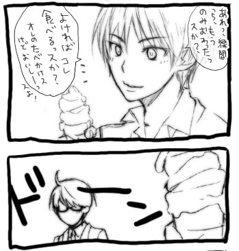 黄緑・・・っ!!! くっそー萌えるなぁー!うちの残念な黄緑とは一味も二味も違うぜ・・・! 緑間かわいい・・・!ちゃんとカップリングっぽい!あーもえっ! オトメなみどみどは本当いいと思います! あと、夢うつつで、えろが見たいよーって言った(ような気がする)ので、 そっちも描いてくれました! ありがとう!ありがとう!!! あ、ちなみに、描いたひとは、おさないさんという、伊月がすきすぎてかわいそうな子です。 つづきからどうぞ・・・! つづきはこちら もう…限界なのだよ…黄緑が読みたくてうずうずします… らくがき あああ単行本の表紙を、メールでもらい・・・ジャンプ本誌もまじ緑間さんがキセキ的にすさまじく萌え・・・るんですが、夏のお祭りが間近ということで、身動きががが・・・! | |