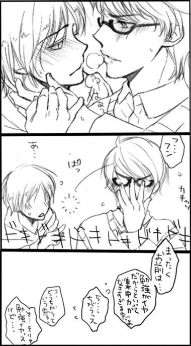 シチュエーションは、 緑が黄の勉強に付き合ってるんだけど、集中力が続かなくて(黄瀬が)「あ、おかし食べるっスか?」「のどかわかないっか?」ってちょこちょこ離脱して、「コーヒー入れるッス」とか。集中力が続かないでちょろちょろしてる黄に緑間がため息をついて。 で。 緑間の後ろから、 「はい。コーヒーっス」 「(はーっ)まったく、だからお前はだめな・・」 振り返った緑間と黄瀬が至近距離で目があって、流れでそんな感じで。 ひとつよろしくお願いします。 このままぐちゃぐちゃになって溶け合って混ざり合ってひとつになっちゃえばいいのに。とかお互いが思ってるといい。 相手のことを一体として求めるような恋をしている黄緑がもえる! ほんとう、後から思うとちょうあまじょっぱ!はずかち!っていうような惚れたはれたでデッドorアライブしてると本気もえるー! 幼い恋だろうとも、せいいっぱい恋してる黄緑がもえる・・・! 黄緑に恋って言葉がもはやもえる・・・ YGあーちゅうがくもこうこうもどっちの黄緑も最高だー こう、カルピスとか清涼飲料水のような恋愛を妄想してはムフムフします。 | |